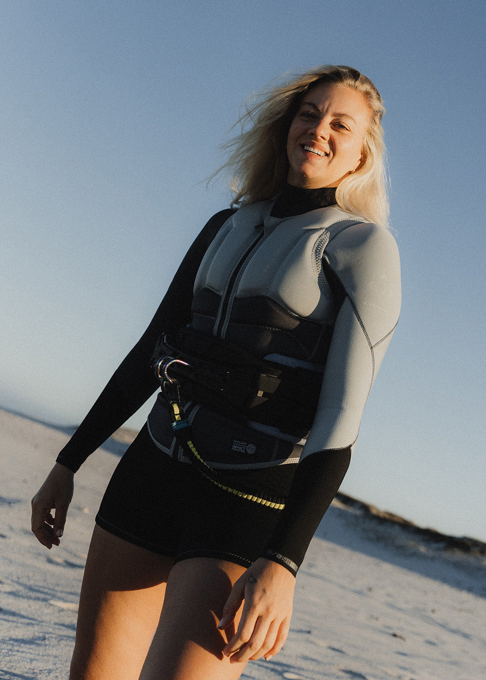 The Prolimit Ace series Impact vests are made of neoprene in a halfpadded construction for use over or under a wetsuit in combination with a waist harness