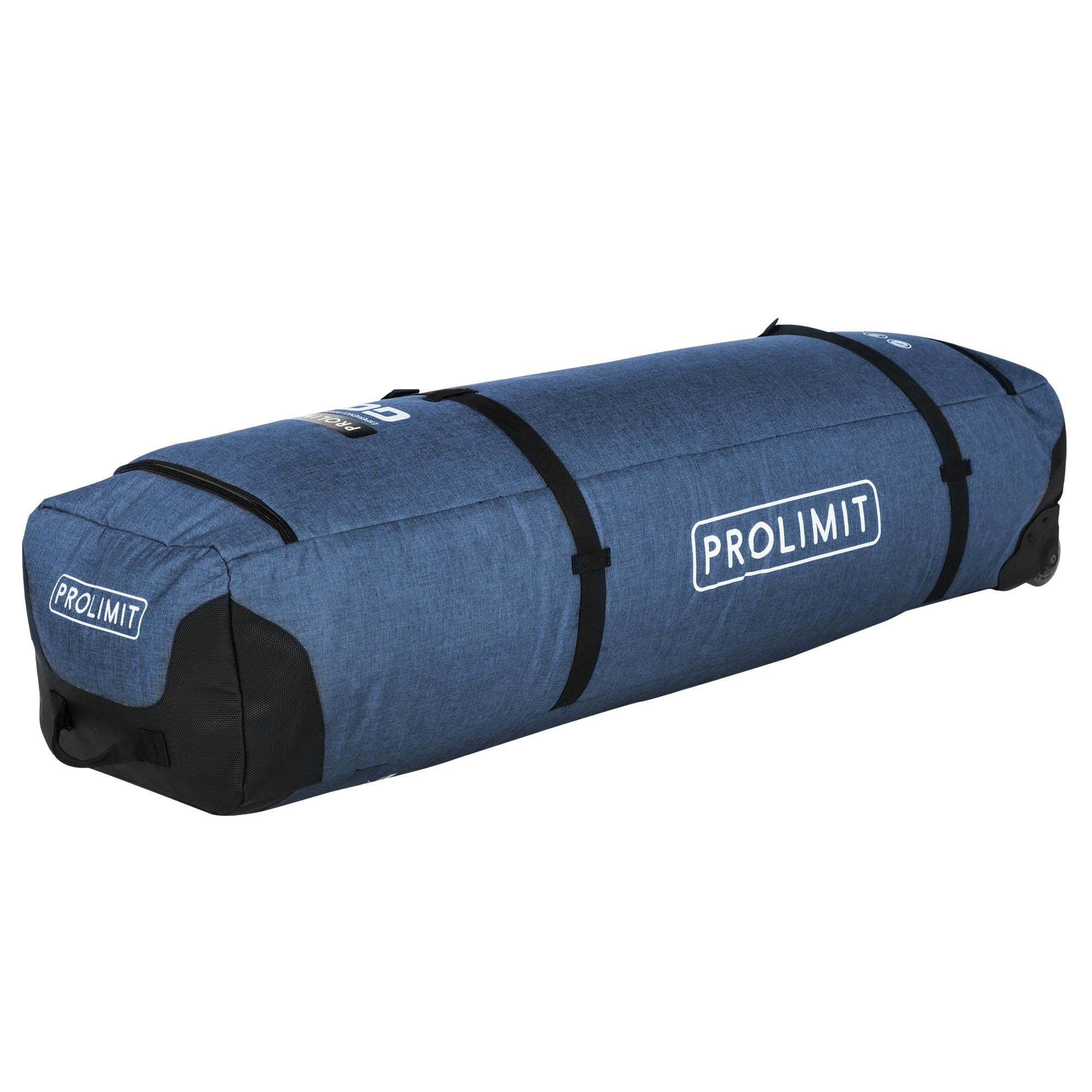 The Prolimit kitesurf boardbag golf aero saves weight while traveling because it is ultra light. Minimal padding, only the corners. Loading the bag from the top makes it acompact and easy travel bag. Fits a complete quiver, 2-3 kites plus board. Bag comes with fixed wheels.