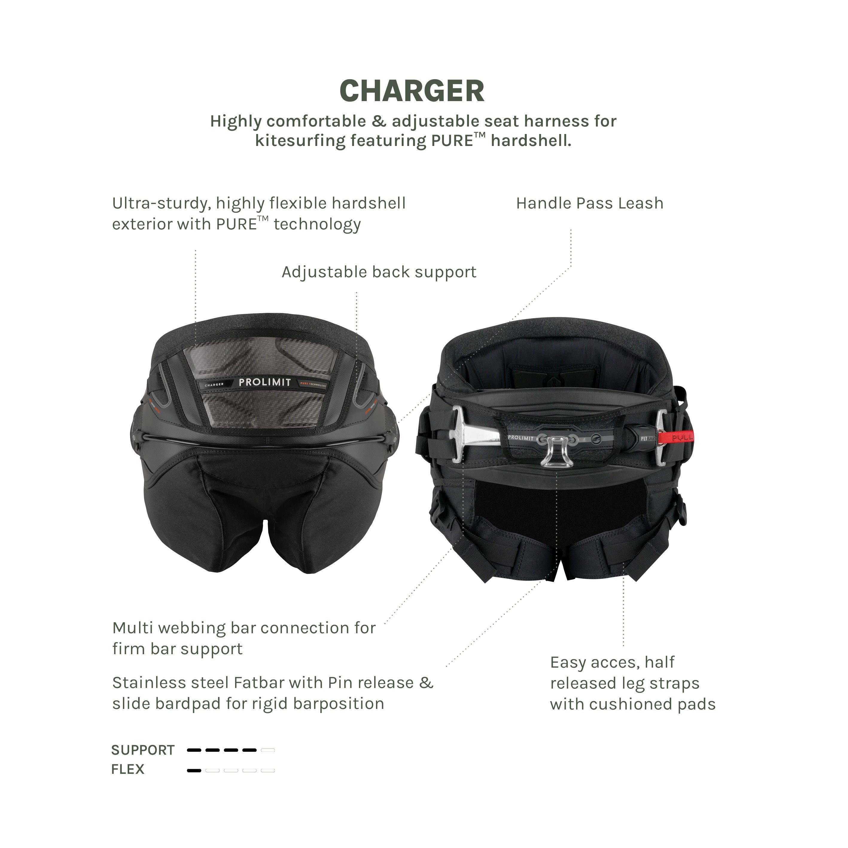 Based of our award winning kiteseat pro with a hardback construction for added and increased back support and stifness in a pure ��� construction. Comfortable harness with medium to high profile and hardback support. Maximum power with back support adjustment and multi strap for individual hook height adjustability.